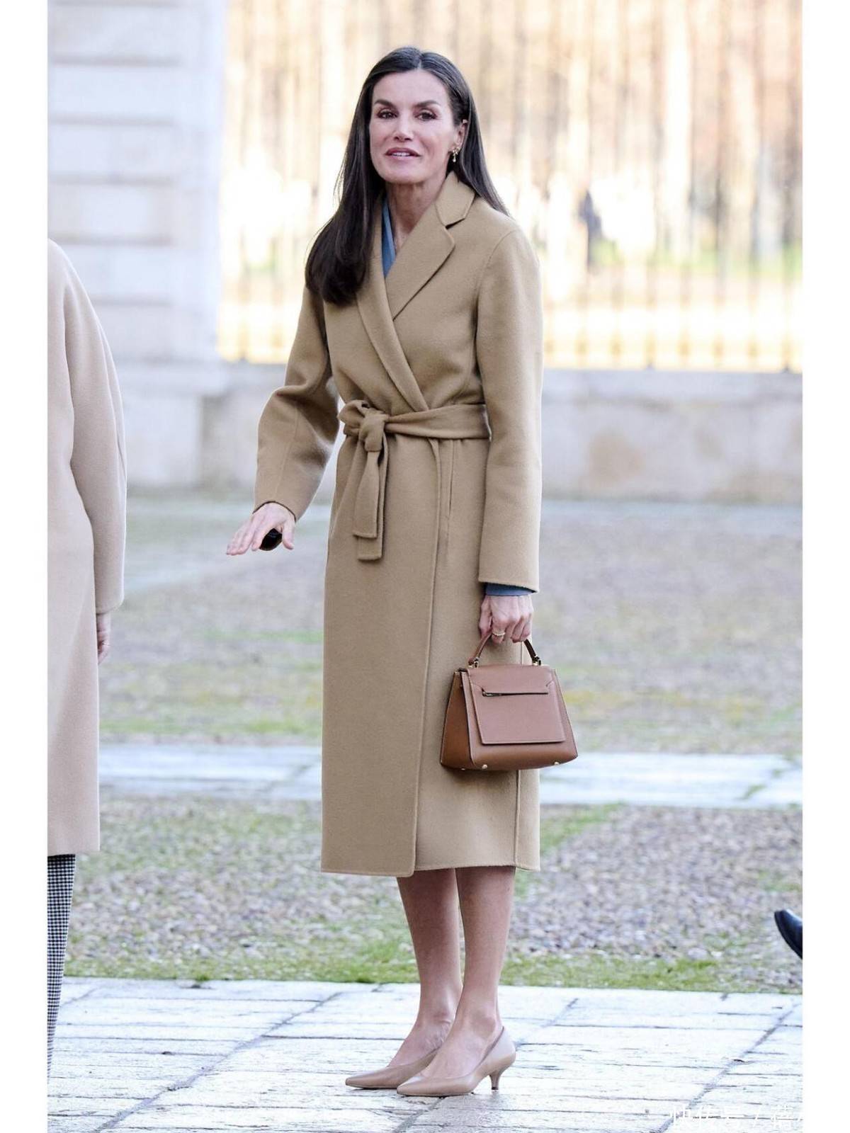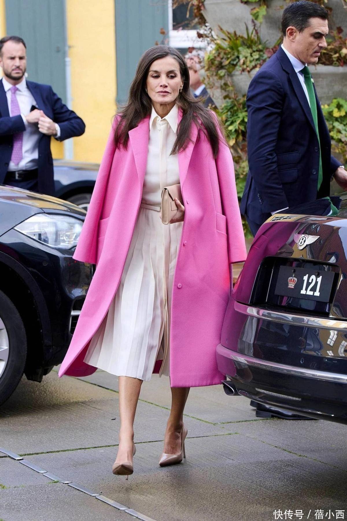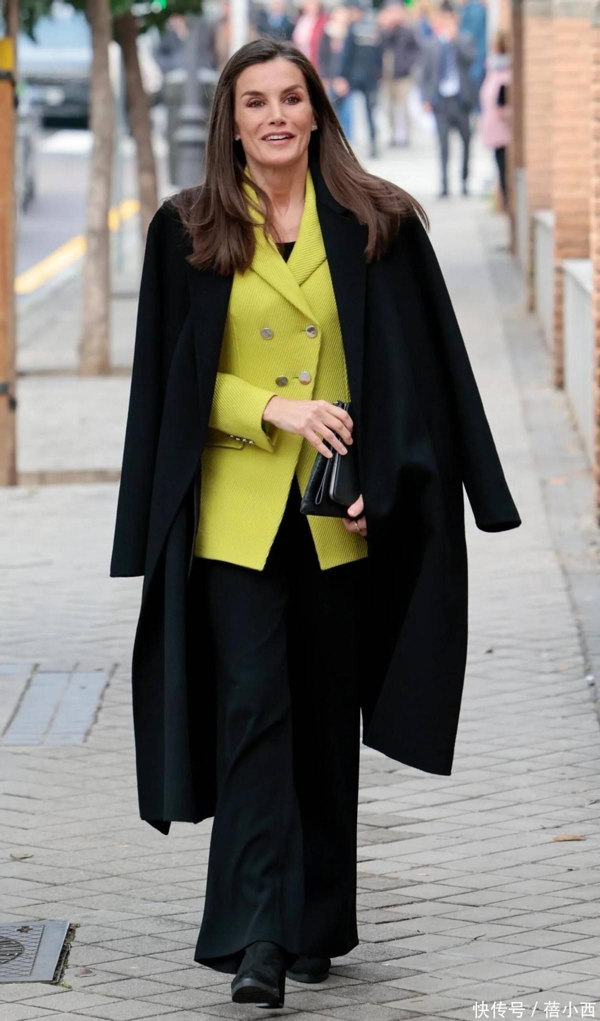 莱蒂王人亚的大衣造型,险些从未出现过牛仔裤的身影,她的下装选拔,永远是及膝半裙、垂感阔腿裤或利落西裤。,种搭配并非或然,而是高档感的中枢逻辑:牛仔裤自带的幽闲随意,与大衣的泄漏质感自然违反,一朝组合,很容易让造型堕入 “上重下轻” 的失衡感。